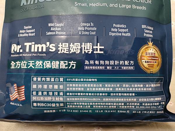 最近Cody進入一個討厭排斥飼料的期間了,我跟朋友聊聊這情形他推薦了我一款Dr.Tim's - 提姆博士美國進口的飼料