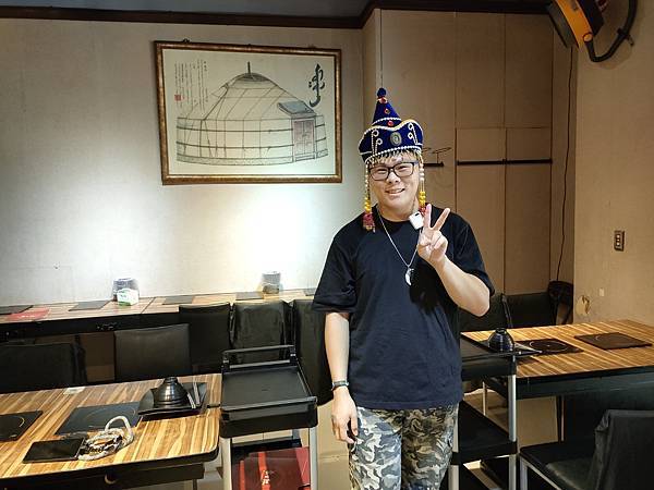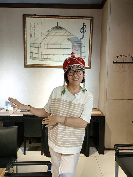 我發現店內還有蒙古傳統的帽子可以拍美美照,當然不會錯過囉!
