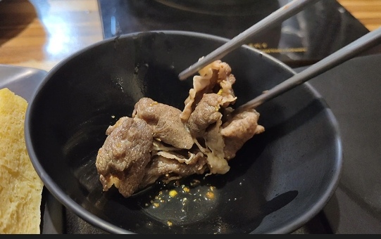 牛肉我選的是比較高單的安格斯牛,我個人吃牛肉大概都是上下涮一涮約10次變色就拿起來