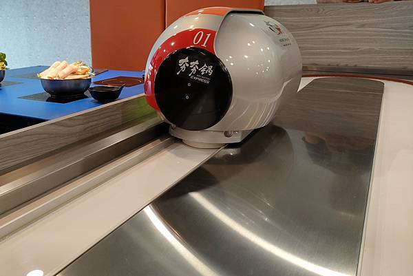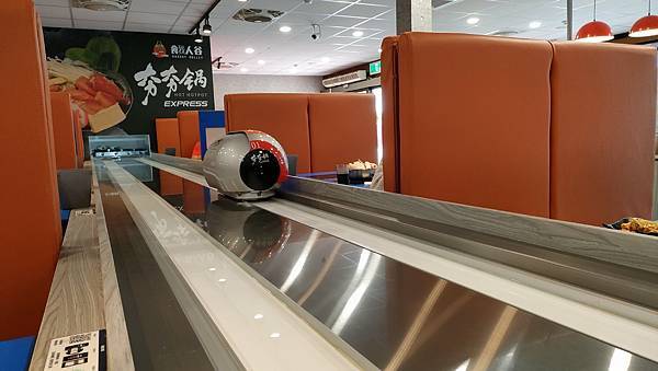 好啦!看完環境跟自助吧!帶大家去看看最酷最炫的時空膠囊送餐吧!~~我狂拍照玩好久敲可愛的啦!