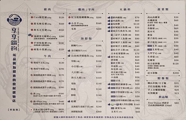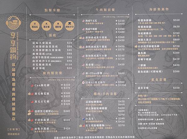 享享鍋物菜單與點餐坐定後來看看享享鍋物環南店的菜單~