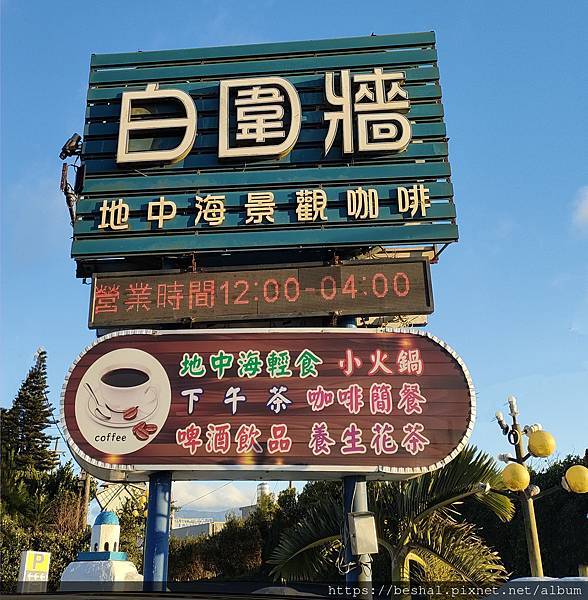 桃園龍潭乳姑山夜景很知名,趁著好天氣來到一家Google評價很高也是我口袋名單~~白圍牆地中海景觀咖啡廳