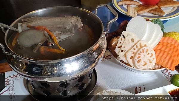 排骨是肋排部位,搭配了金針.紅棗.牛蒡,除了主鍋還附有一大盤養生蔬菜盤及白飯,