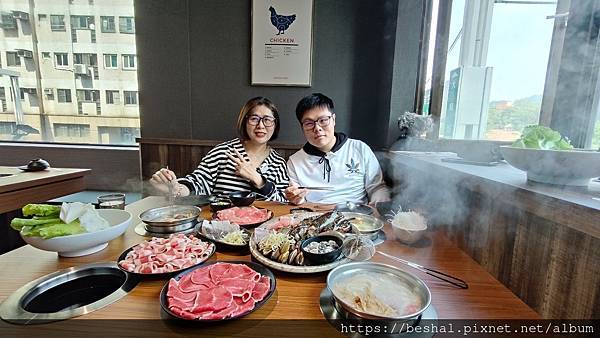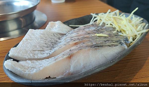 梅花豬套餐$228+超值海鮮$97選了金目鱸魚:梅花豬算是比較瘦不會太油,切的也是有厚度的下鍋煮後可以吃出肉本身的Q度很有口感,另外超級推薦一定要記得加點超值海鮮,我們加$97選了金目鱸魚,鱸魚片沒有刺整整五大片非常新鮮好吃,那魚皮滿滿的膠質超讚的!套餐的蔬菜盤菜量也很多大多是當季蔬菜菇類還有一隻白蝦,沒有太多的加工餃類算是健康食材很好我喜歡.