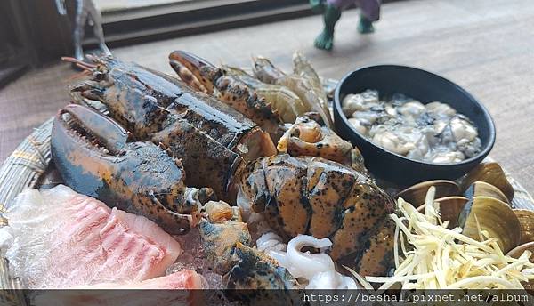 龍蝦套餐搭配的海鮮五品(蛤蜊.鮮蚵.白蝦.野生花枝.鯛魚)也沒在給你小氣的,每一種都非常新鮮可以吃到海鮮的甜味量非常夠吃