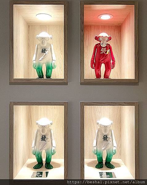 現場看到老闆的收藏擺放牆覺得超可愛~~是猴子公仔,聽說這是全球限量99隻唷!