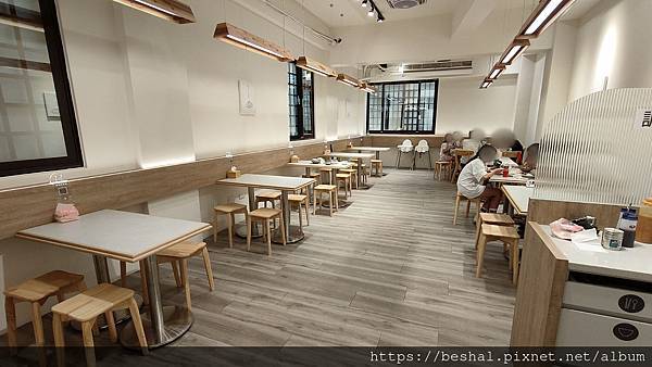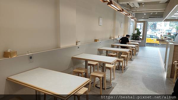 鴨肉榮藝文店共有兩個樓層,座位大都是四人桌,從燈光、桌面到地板真的非常乾淨舒適,真的有別於傳統麵食店的感覺,小幫手覺得很文青、有網美風格喔~