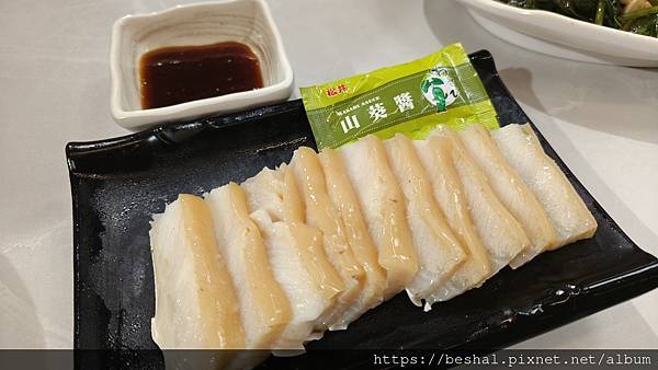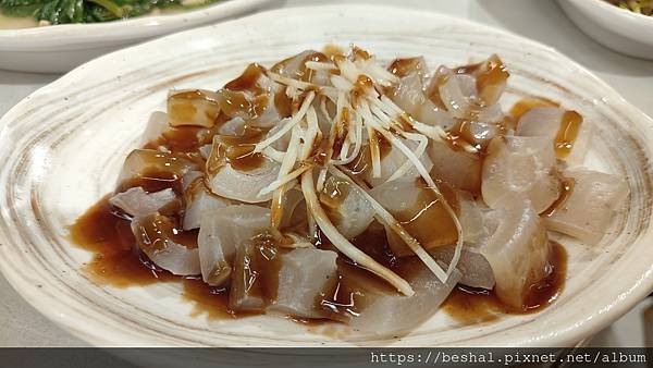 燙豬皮$50:豺狼的最愛,這道厲害了,小幫手本來不太敢吃,但他們把豬皮處裡的非常好,油脂刮乾淨後沾上醬油膏,搭配薑絲超滿足,小幫手一口接著一口吃,吃完後說太好吃了喔!