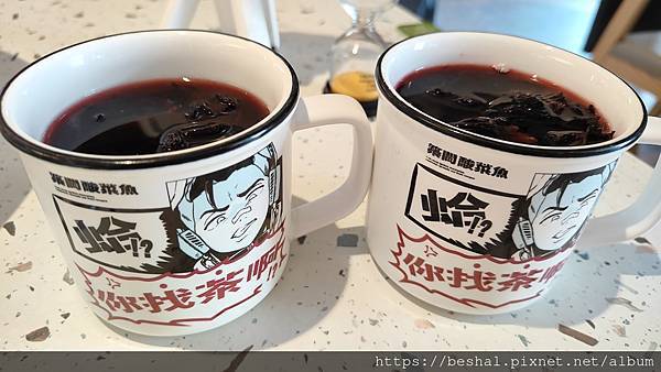 現場有免費提供洛神陳皮茶自助使用,完餐後等待上菜前別忘了先來泡一杯熱熱的酸甜解辣喔~