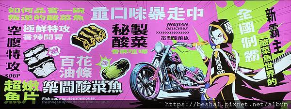 築間酸菜魚的店面以暴走族文化漫畫風裝修,海報運用有趣及活力的設計風格,貼近年輕人的市場很可愛有趣,好吸引大家眼光停留~