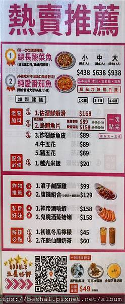 店家還提供了一張熱賣推薦的菜單可以很清楚簡單找出熱銷及客人愛點的產品喔!
