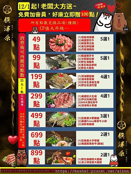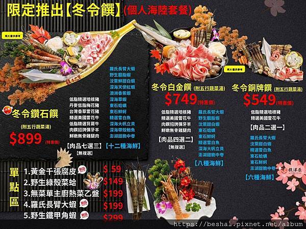 現在推出三種冬令饌,冬令鑽石饌肉品七選三還有12種海鮮,冬令銅牌饌只要$549肉品二選一還有六種海鮮~CP值超高