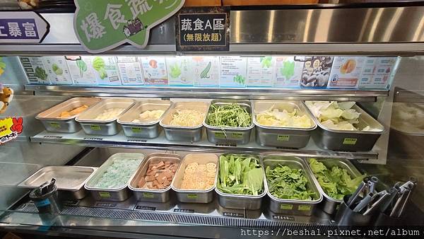 蔬菜區有各種蔬菜蒟蒻鴨血,還有花枝漿墨魚漿都可以無限取用喔!