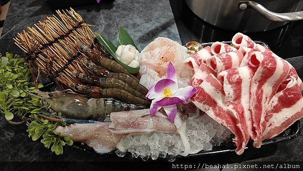 肉品我們選擇的是低脂背肩牛跟低脂梅花豬,鮮嫩無骨雞腿肉,梅花豬肉質很好,稍微燙過後不用加醬都很好吃