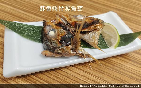 竹筴魚烤魚頭:外皮酥香,肉質細嫩多汁。