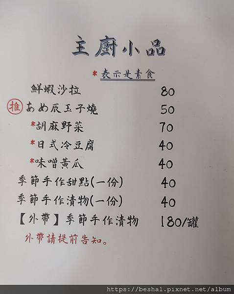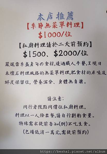 無菜單料理三種價位:$1000 / $1500 / $2000,依季節食材設計菜色