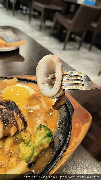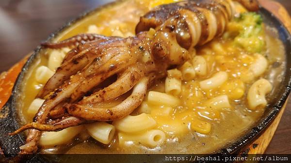 炸得金黃酥脆的魷魚排一上桌香氣撲鼻,外層微酥帶點脆口,裡面的魷魚肉質彈牙鮮嫩,吃起來完全不會有油膩感。搭配Q彈的通心麵,吸附醬汁後更有層次感,份量十足,女生一份就能吃得非常飽。