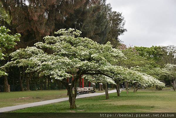 北水局前的草地種植整排流蘇每年開花都是吸引很多民眾跟攝影愛好者,尤其以涼亭旁的流蘇最為壯觀。