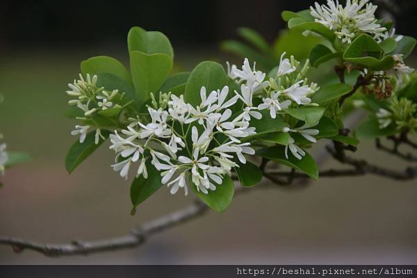 流蘇花花朵為純白色開花就像皚皚白雪佈滿樹梢所以又有"四月雪"的美名喔!