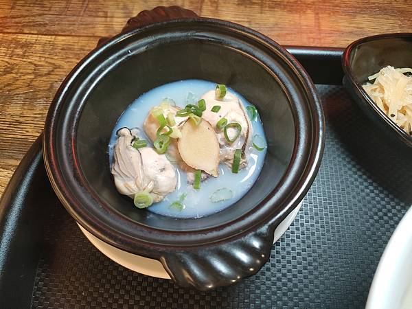 牡蠣拉麵 老闆幫我搭配的是白湯,他建議先喝一下原味湯再將超大顆北海道牡蠣,霸氣放入碗中,